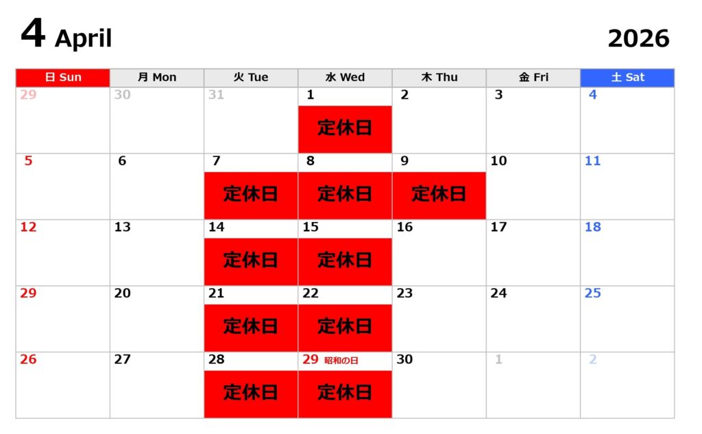 4月の営業スケジュールを更新しました。急用により外出す場合がございますので、大切なお手続きの際は事前予約をお願いいたします。